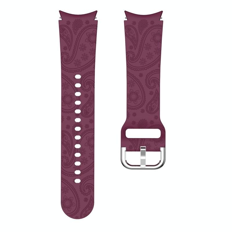Για Samsung Galaxy Watch 6 Ethnic στυλ λουλούδια ανάγλυφο σιλικόνης ρολόι μπάντα ρολογιών (κόκκινο κρασί)