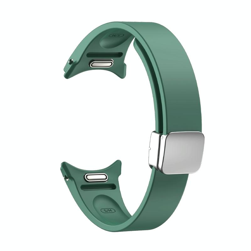 For Samsung Galaxy Watch 6 Magnetic Folding Silver Buckle Silicone Watch Band(Army Green)