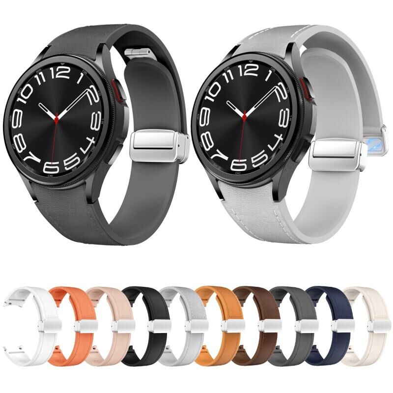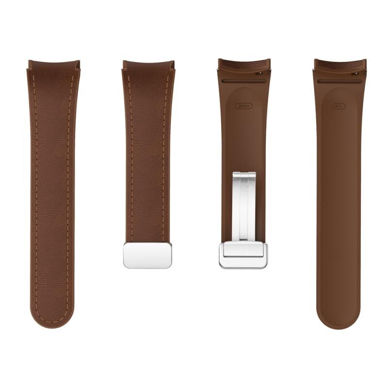Για Samsung Galaxy Watch 6 Μαγνητική ασημένια πόρπη Δερμάτινη ζώνη ρολογιού σιλικόνης (σκούρο καφέ)