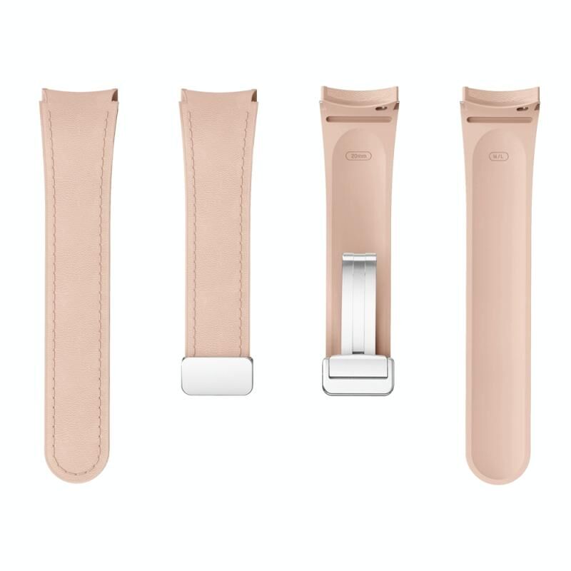 Για Samsung Galaxy Watch 6 Μαγνητική ασημένια πόρπη Δερμάτινη ζώνη ρολογιού σιλικόνης (ροζ)
