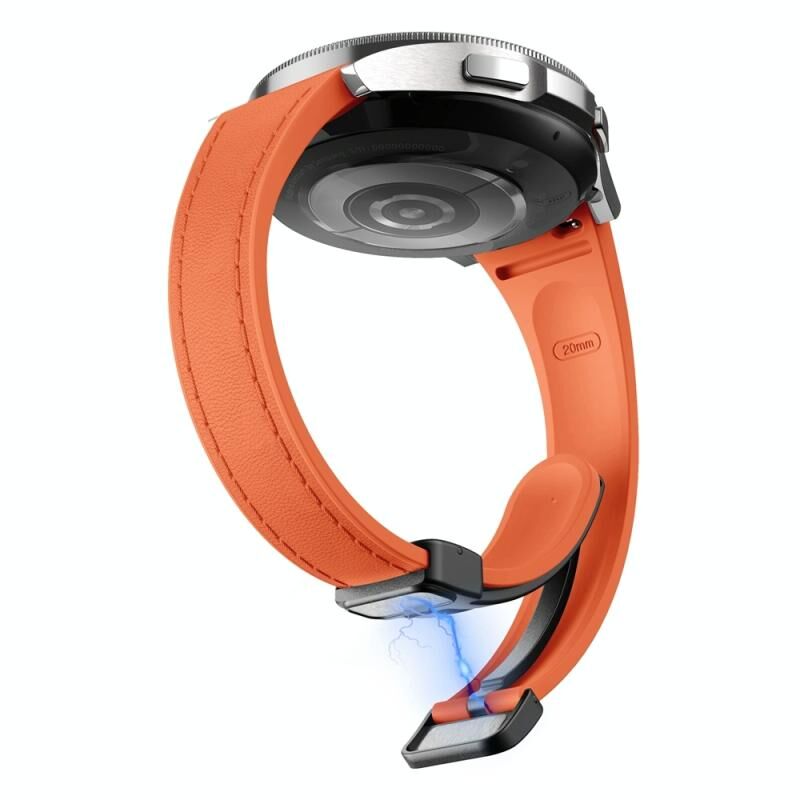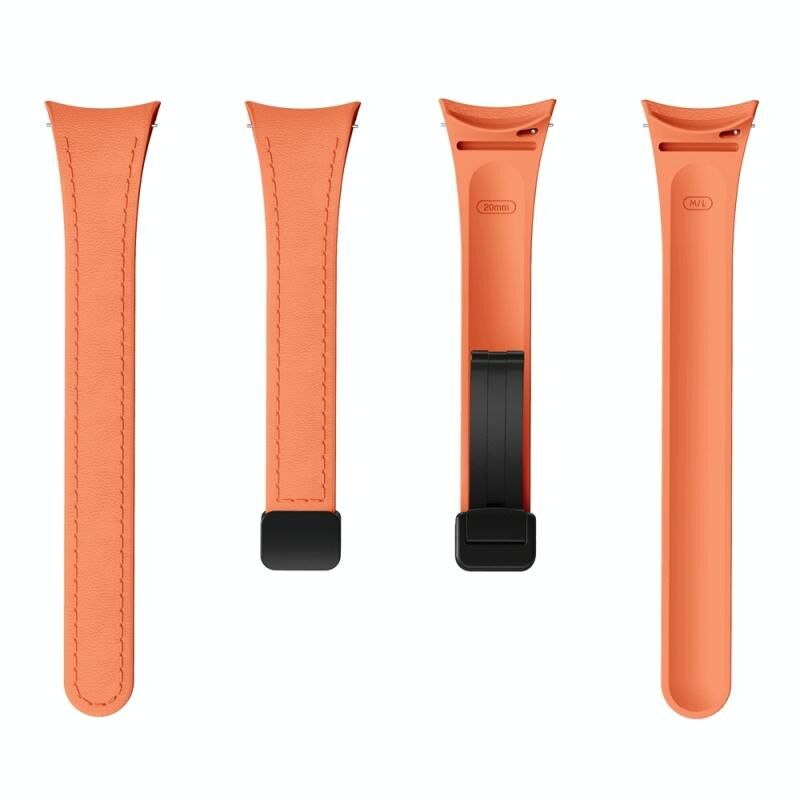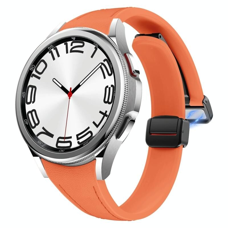 Για Samsung Galaxy Watch 6 Slim Μαγνητική μαύρη πόρπη δερμάτινη ζώνη ρολογιού σιλικόνης (πορτοκαλί)