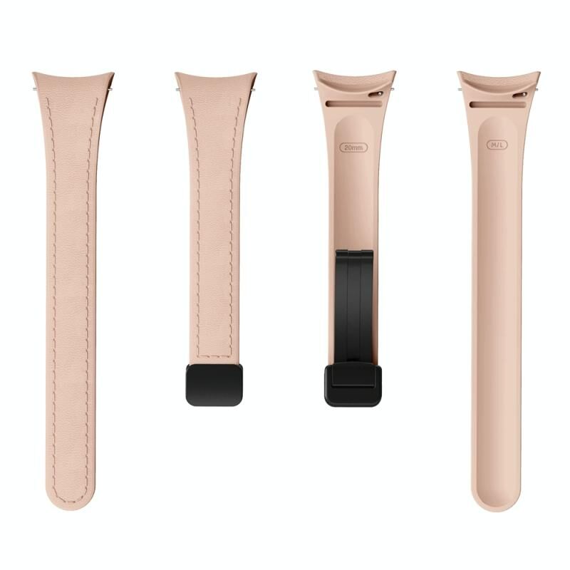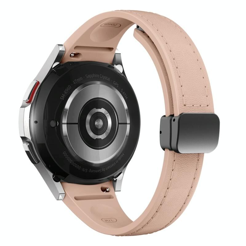 Για Samsung Galaxy Watch 6 Slim Μαγνητική μαύρη πόρπη δερμάτινη ζώνη ρολογιού σιλικόνης (ροζ)