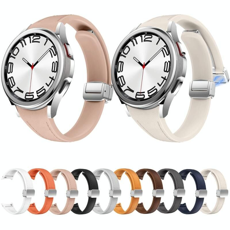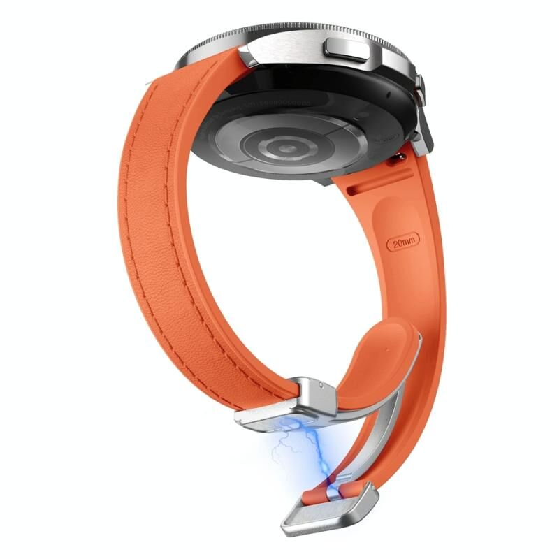 Για το Samsung Galaxy Watch 6 Slim Magnetic Silver Buckle Leather Silicone Watch Band (Πορτοκαλί)