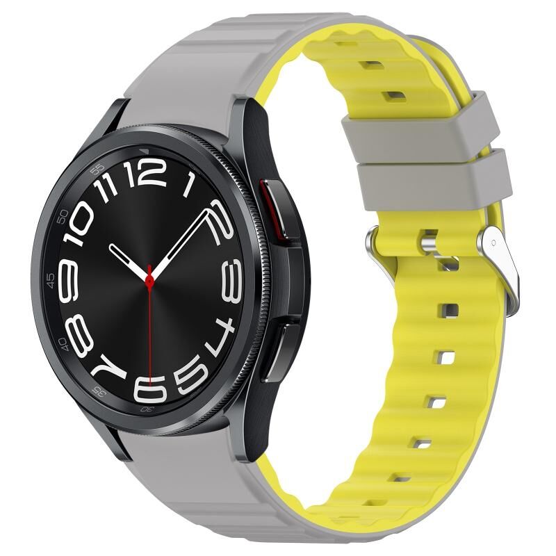 Για το Samsung Galaxy Watch 6 Δύο χρώματα οριζόντια ζώνη σιλικόνης ρολόι (γκρι κίτρινο)