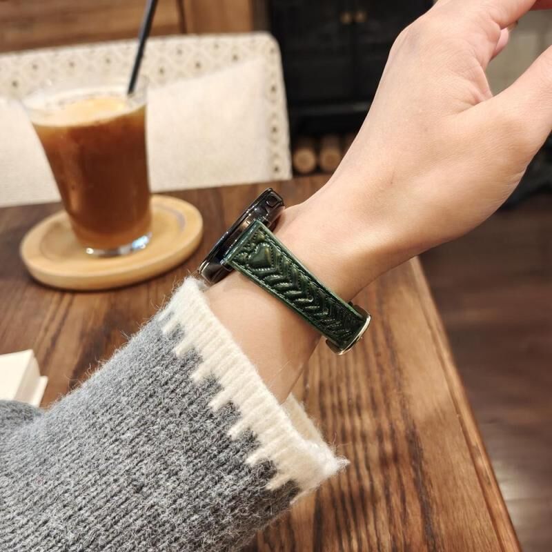Για το Samsung Galaxy Watch 7 20mm Heart-Shaped ανάγλυφο δερμάτινο λουράκι ρολογιού (πράσινο του δάσους)