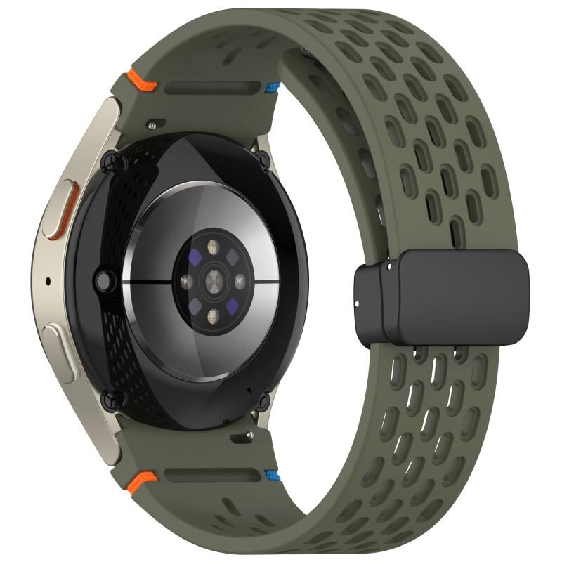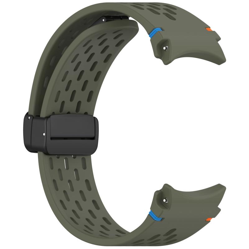 For Samsung Galaxy Watch 7 40 / 44mm Holes Style Stitched Folding Buckle Silicone Watch Band(Army Green)