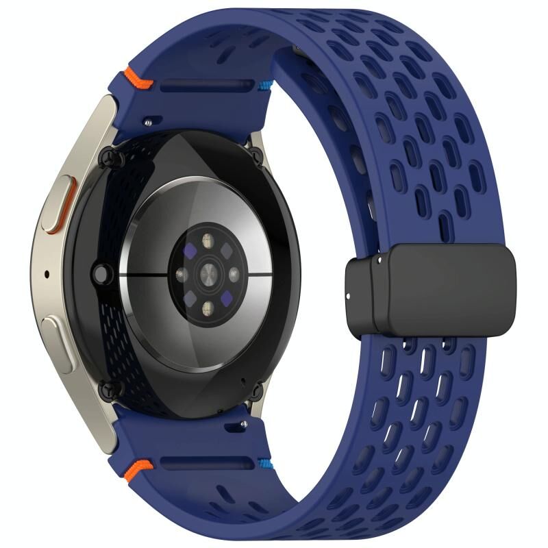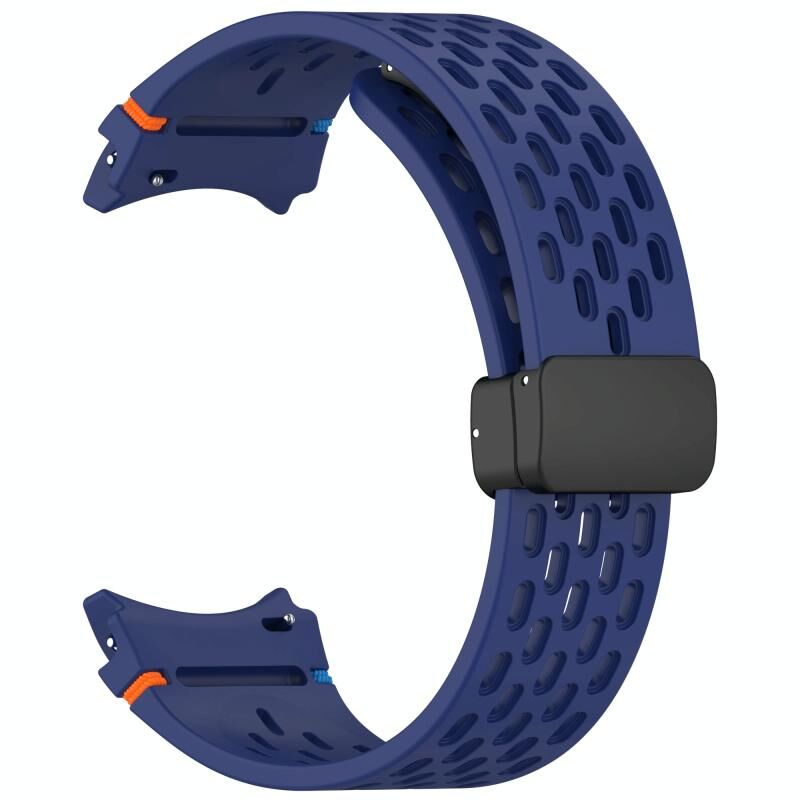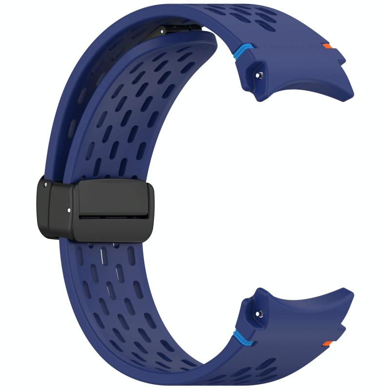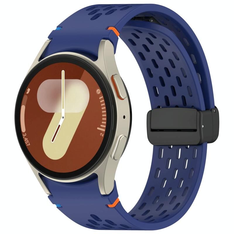 For Samsung Galaxy Watch 7 40 / 44mm Holes Style Stitched Folding Buckle Silicone Watch Band(Midnight Blue)