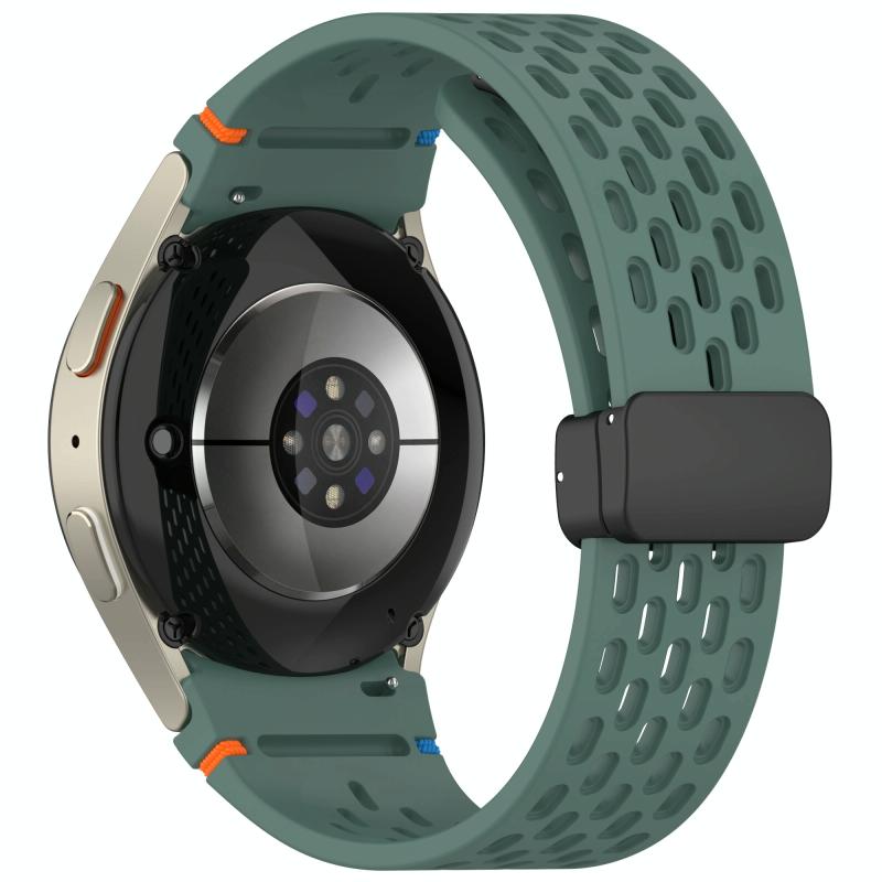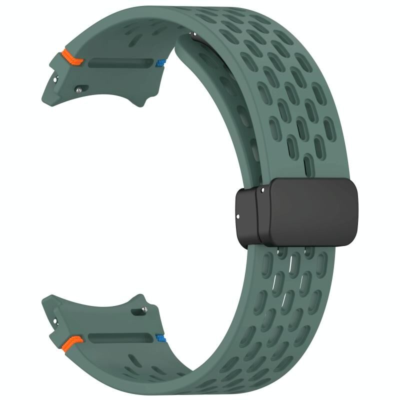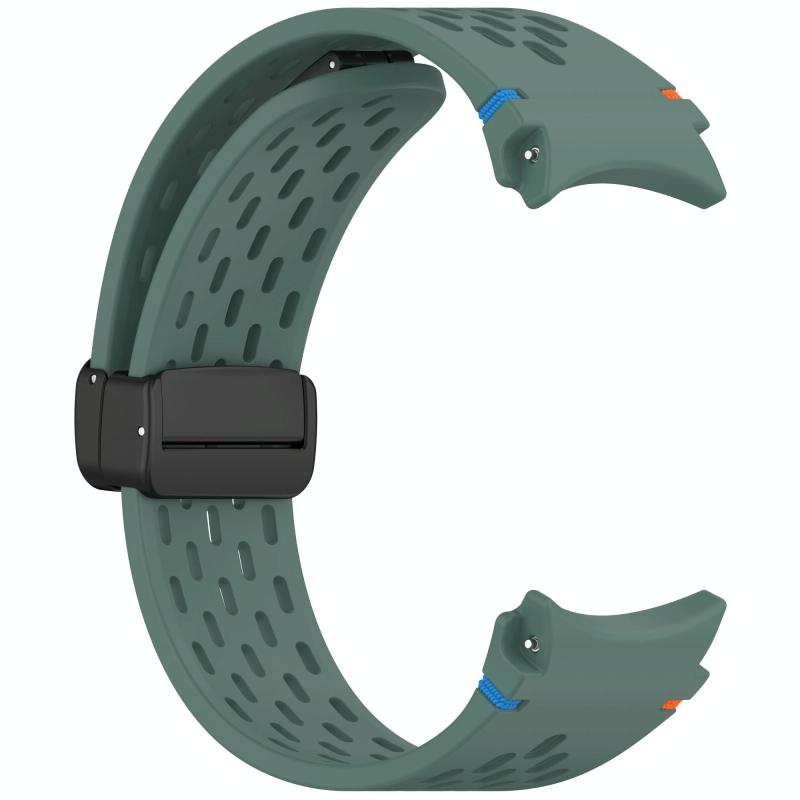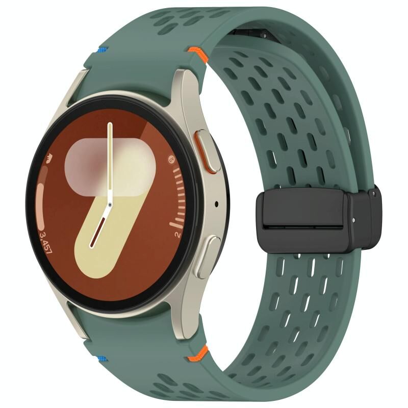 For Samsung Galaxy Watch 7 40 / 44mm Holes Style Stitched Folding Buckle Silicone Watch Band(Olive Green)
