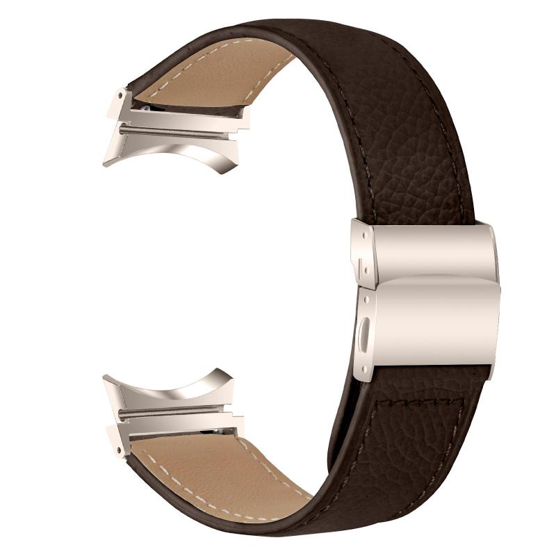For Samsung Galaxy Watch 7 40 / 44mm Lychee Texture Starlight Turtle Back Buckle Leather Watch Band(Coffee Color)