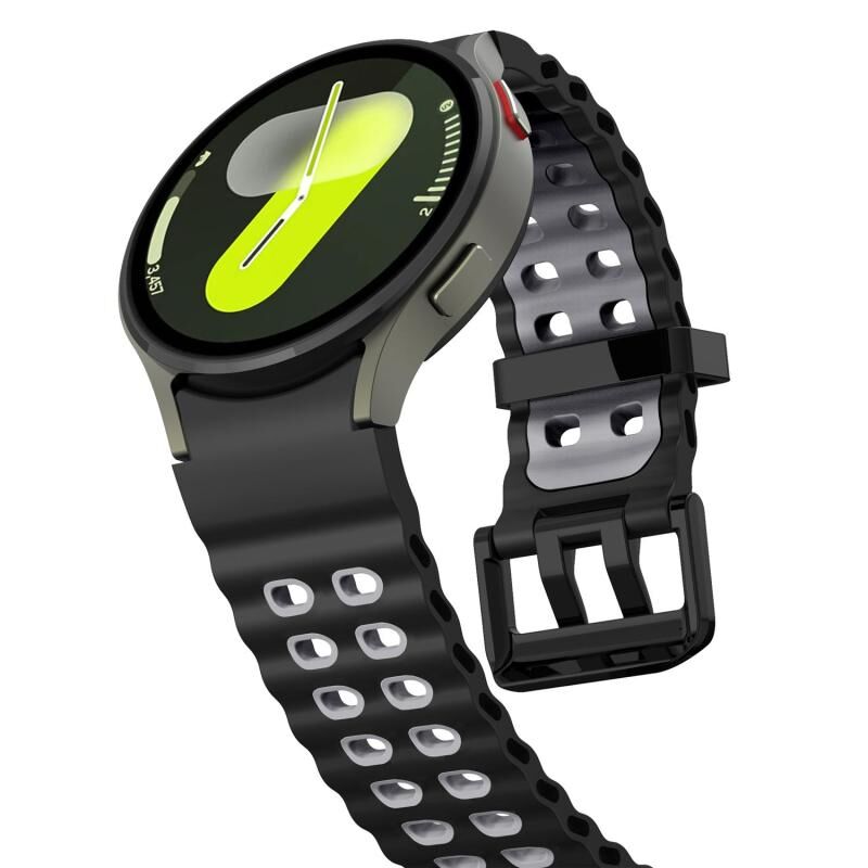 For Samsung Galaxy Watch 7 40 / 44mm Ocean Dual-Row Hole Two Color Silicone Watch Band(Black Grey)