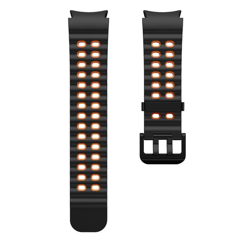 For Samsung Galaxy Watch 7 40 / 44mm Ocean Dual-Row Hole Two Color Silicone Watch Band(Black Orange)