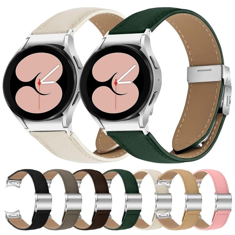 Για Samsung Galaxy Watch 7 40 / 44mm Ταχυσύνδεση Λουτσί Δέρμα Ασημένια Αγκράφα Κουρτίνας (Μαύρο)