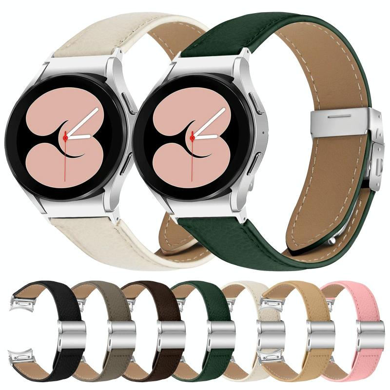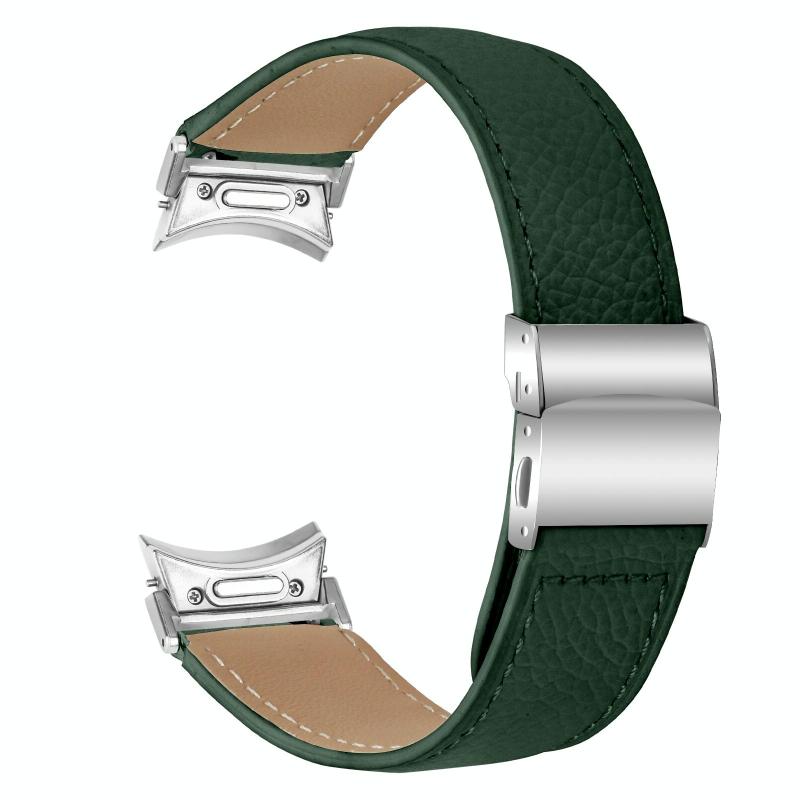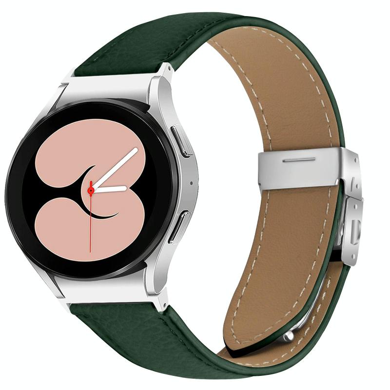 For Samsung Galaxy Watch 7 40 / 44mm Quick Release Lychee Texture Silver Turtle Back Buckle Leather Watch Band(Green)