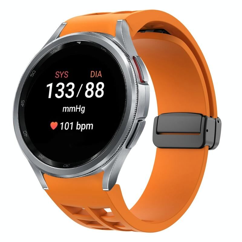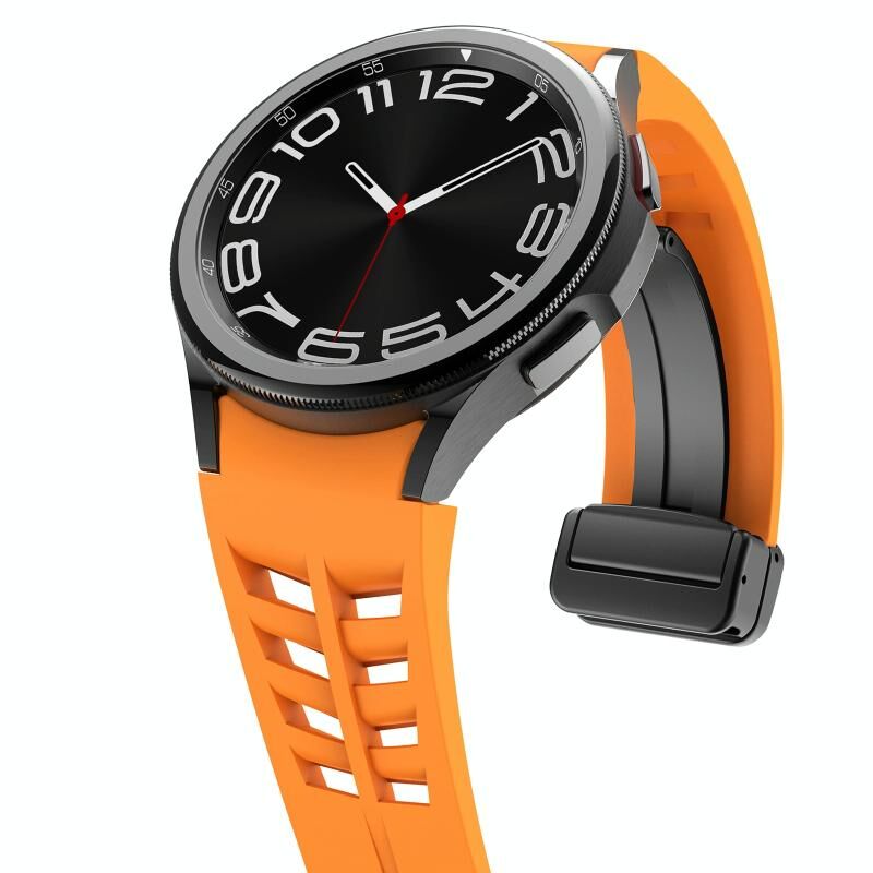 Για το Samsung Galaxy Watch 7 40 / 44mm Richard Μαγνητική πτυσσόμενη μαύρη ζώνη ρολογιού σιλικόνης με αγκράφα (πορτοκαλί)