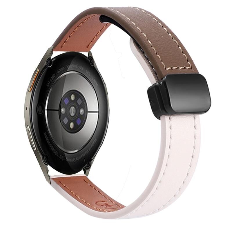 For Samsung Galaxy Watch 7 40 / 44mm Slim Magnetic Buckle 20mm Microfiber Leather Watch Band(Apricot+Caramel Macchiato)