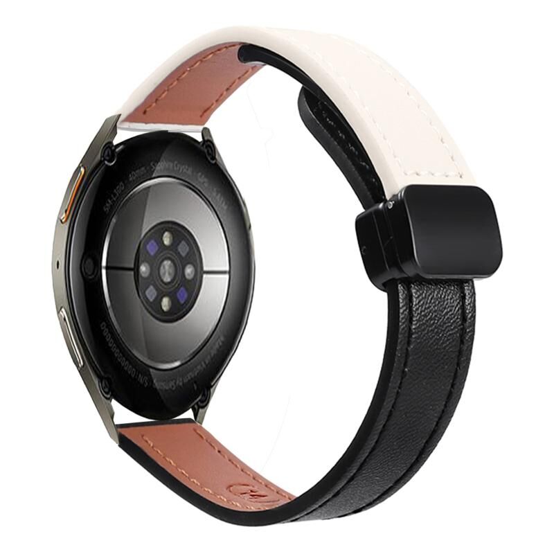 For Samsung Galaxy Watch 7 40 / 44mm Slim Magnetic Buckle 20mm Microfiber Leather Watch Band(Black+Apricot)