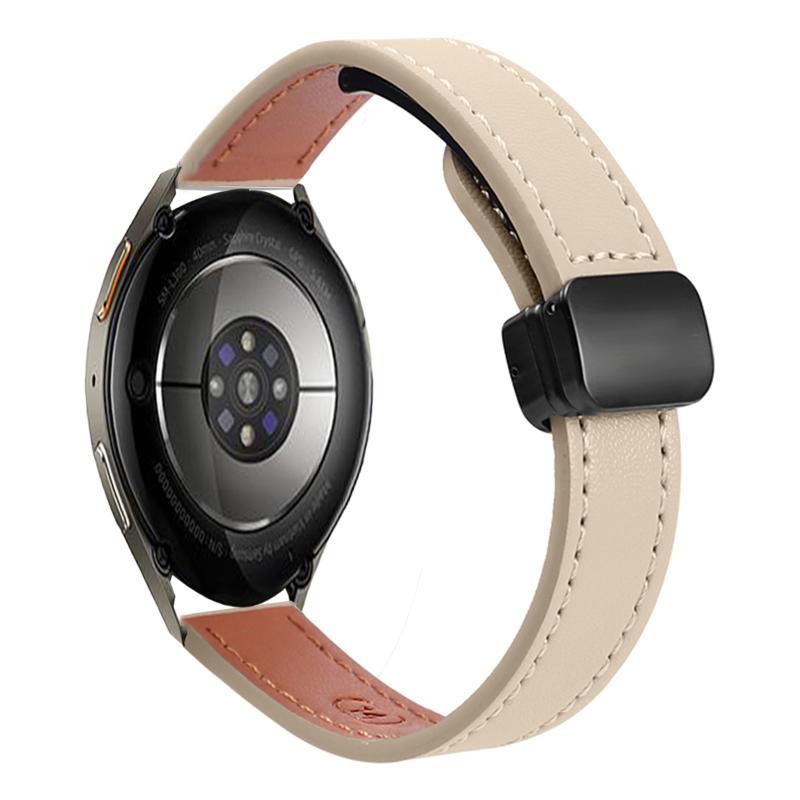 For Samsung Galaxy Watch 7 40 / 44mm Slim Magnetic Buckle 20mm Microfiber Leather Watch Band(Cream Apricot)