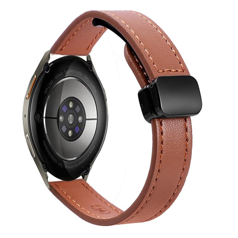 For Samsung Galaxy Watch 7 40 / 44mm Slim Magnetic Buckle 20mm Microfiber Leather Watch Band(Mocha Brown)