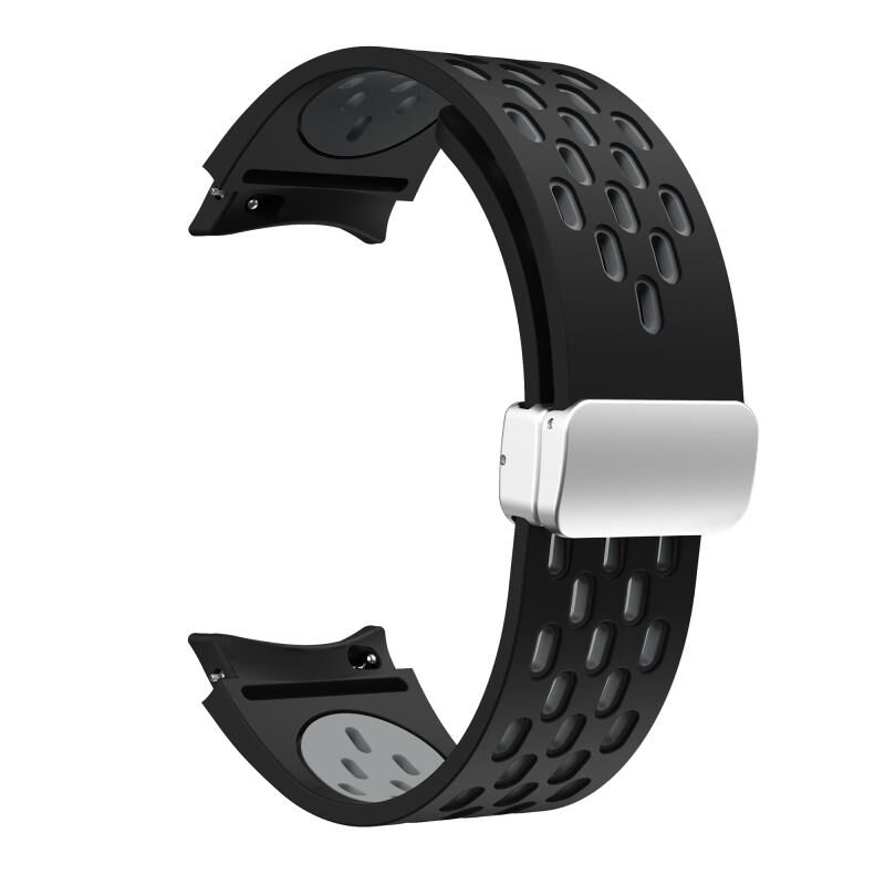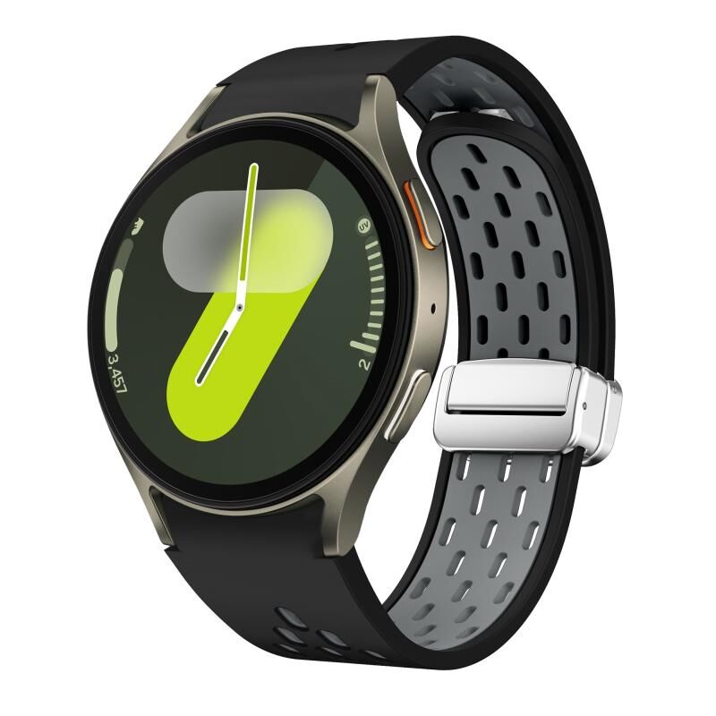 Για το Samsung Galaxy Watch 7 40 / 44mm Δύο χρώματα μαγνητική πτυσσόμενη ασημένια πόρπη σιλικόνης (μαύρο γκρι)