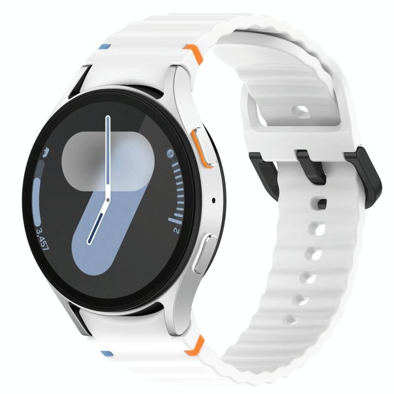 Για το Samsung Galaxy Watch 7 40 / 44mm Wavy Grain Stitched Black Buckle Silicone Watch Band (Λευκό)