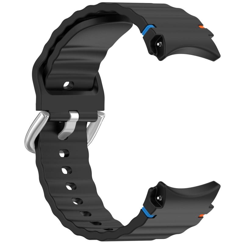 For Samsung Galaxy Watch 7 40 / 44mm Wavy Grain Stitched Silver Buckle Silicone Watch Band(Black)