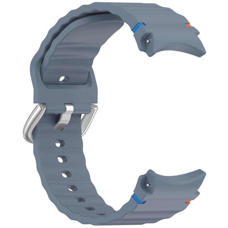For Samsung Galaxy Watch 7 40 / 44mm Wavy Grain Stitched Silver Buckle Silicone Watch Band(Blue)