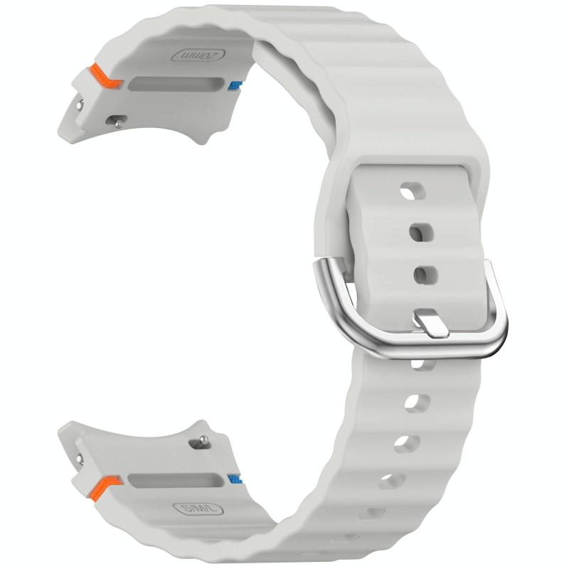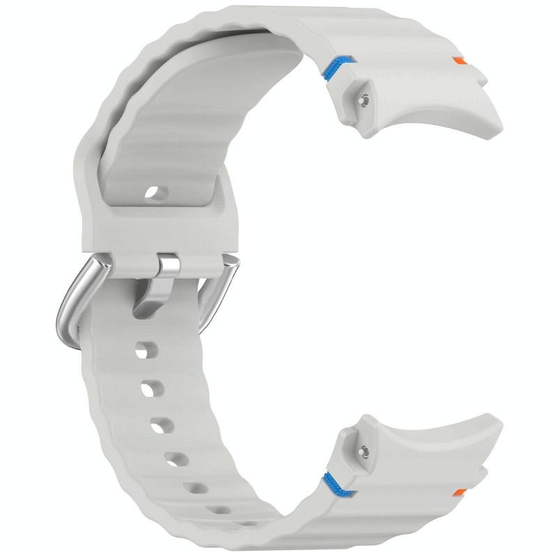 For Samsung Galaxy Watch 7 40 / 44mm Wavy Grain Stitched Silver Buckle Silicone Watch Band(Light Gray)