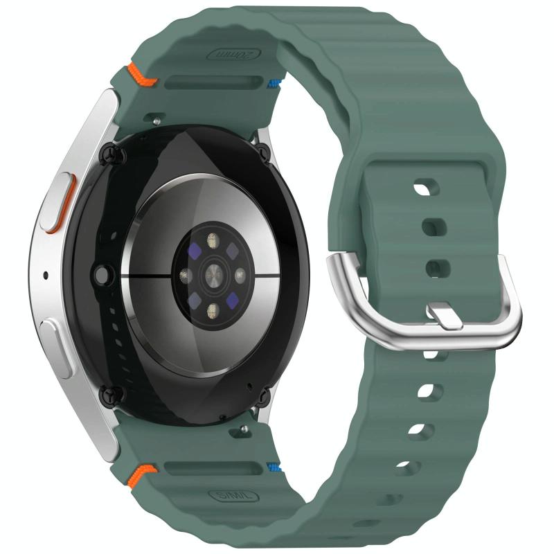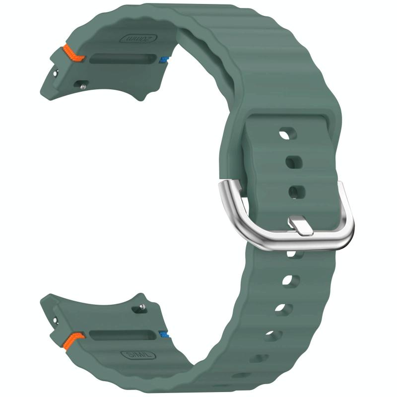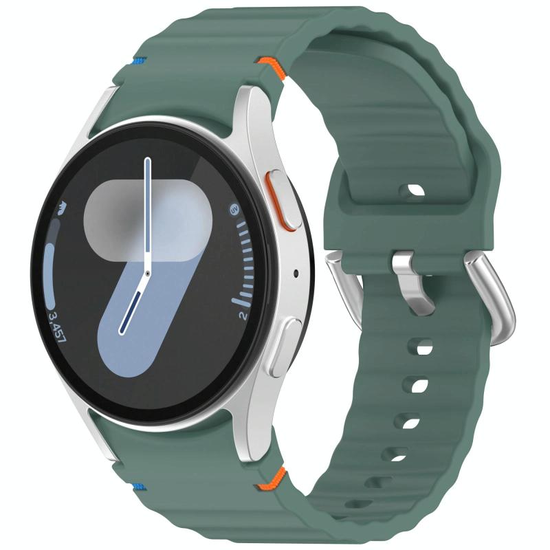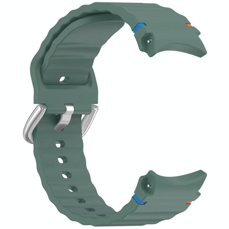 For Samsung Galaxy Watch 7 40 / 44mm Wavy Grain Stitched Silver Buckle Silicone Watch Band(Olive Green)