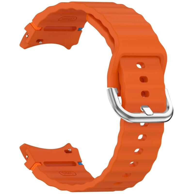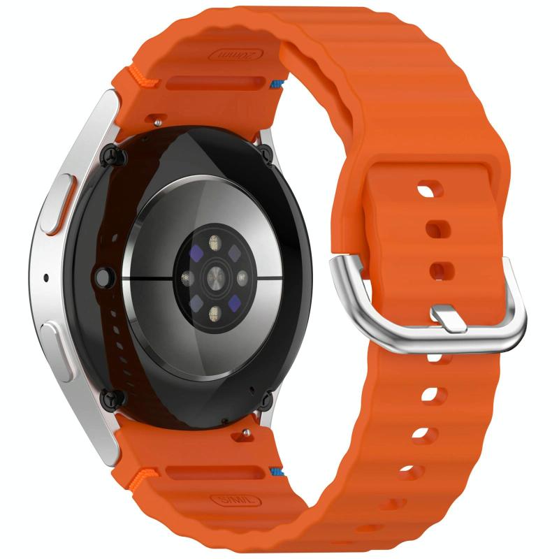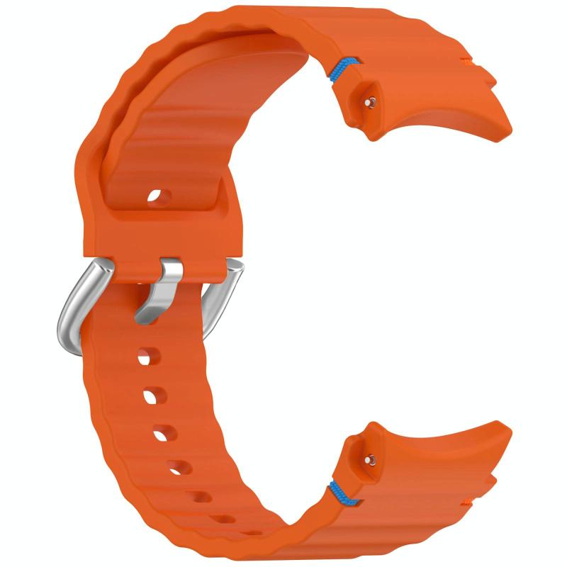 For Samsung Galaxy Watch 7 40 / 44mm Wavy Grain Stitched Silver Buckle Silicone Watch Band(Orange)