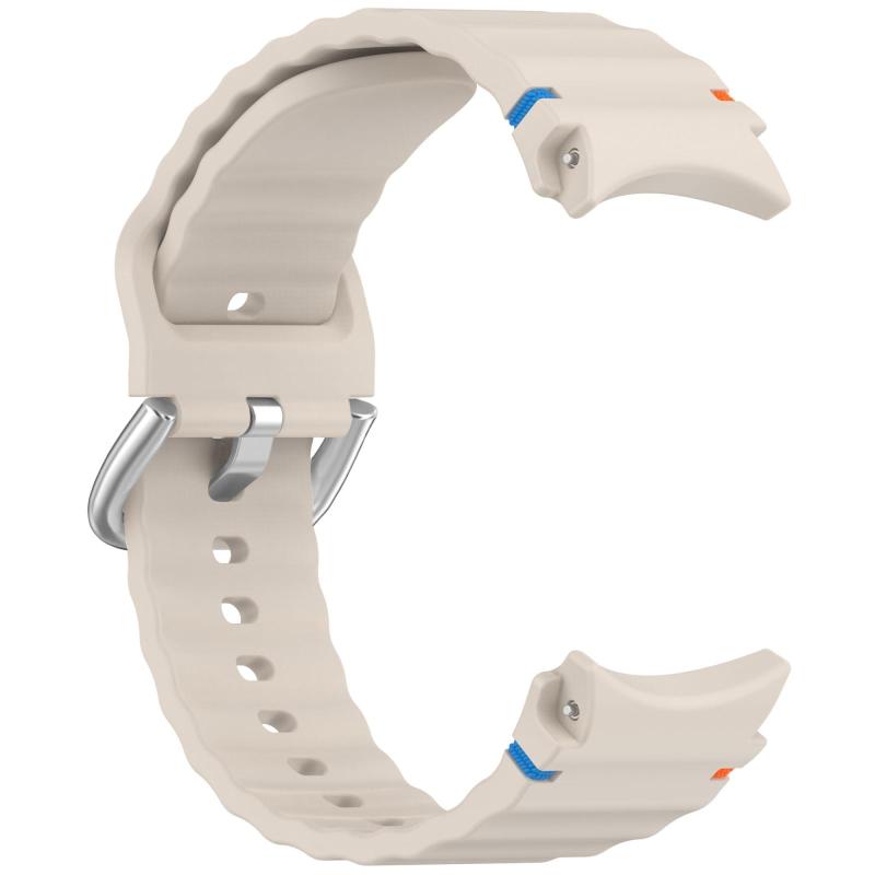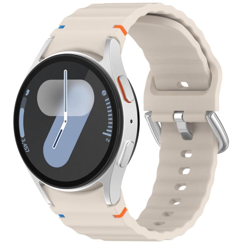 For Samsung Galaxy Watch 7 40 / 44mm Wavy Grain Stitched Silver Buckle Silicone Watch Band(Starlight)