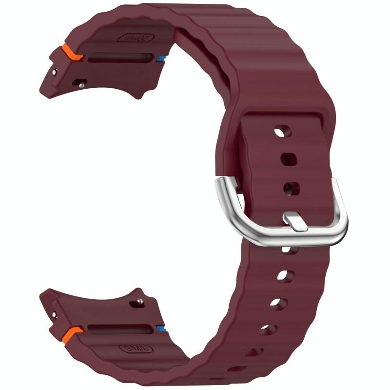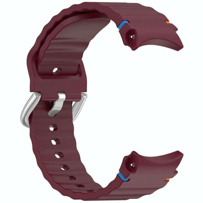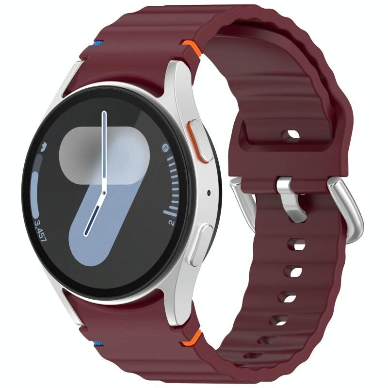 For Samsung Galaxy Watch 7 40 / 44mm Wavy Grain Stitched Silver Buckle Silicone Watch Band(Wine Red)