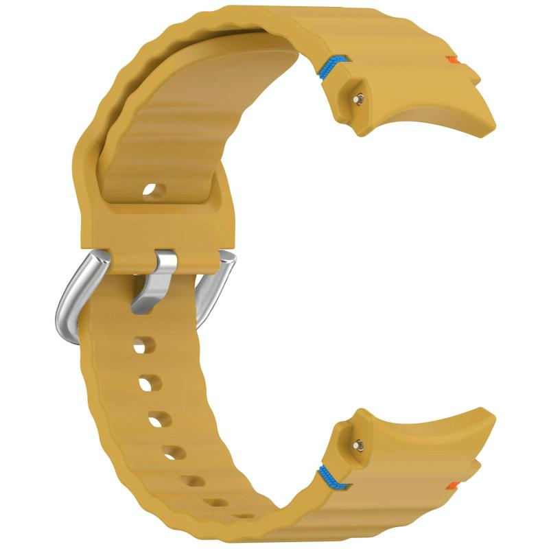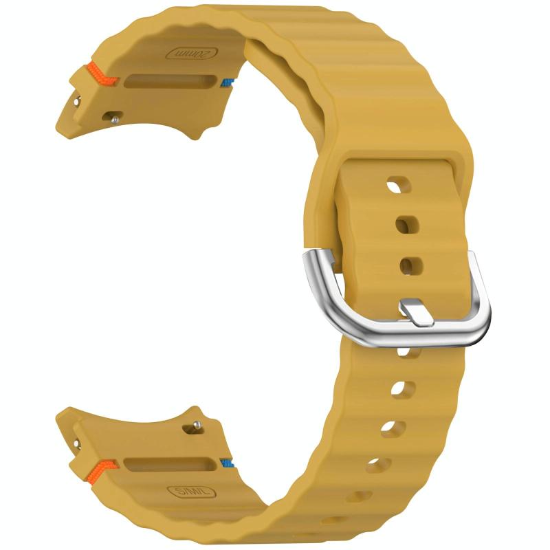 For Samsung Galaxy Watch 7 40 / 44mm Wavy Grain Stitched Silver Buckle Silicone Watch Band(Yellow)