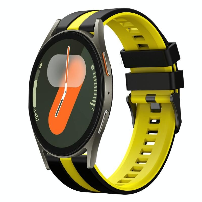 Για το Samsung Galaxy Watch 7 40mm 20mm Δύο Χρώματα Αθλητικό λουράκι ρολογιού σιλικόνης (Μαύρο+Κίτρινο)