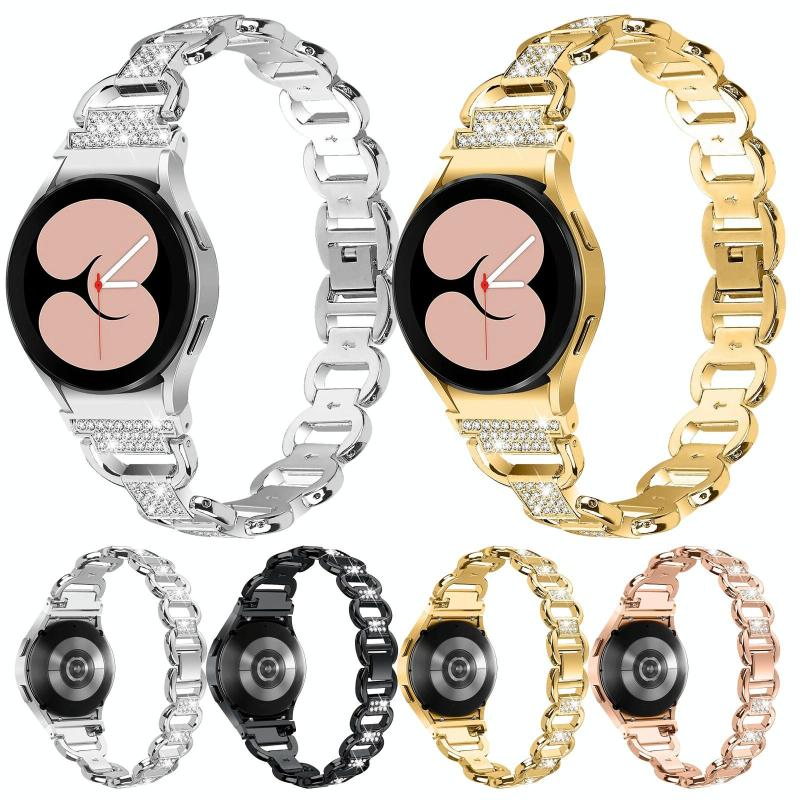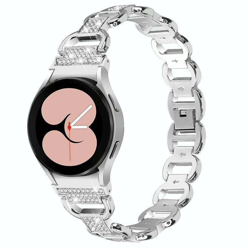 For Samsung Galaxy Watch 7 40mm / 44mm Metal Head Oval Diamond Stainless Steel Watch Band(Silver)