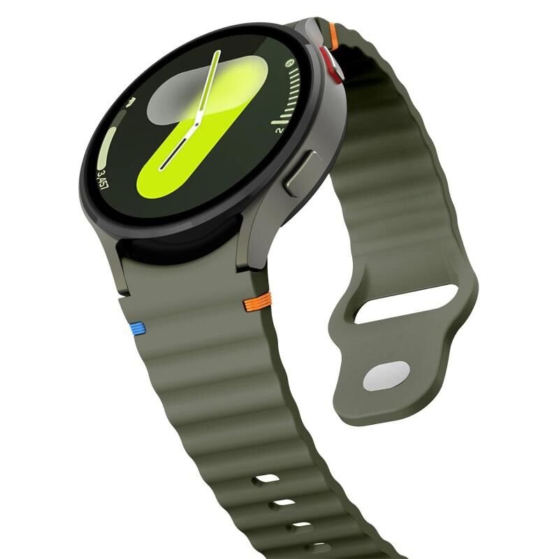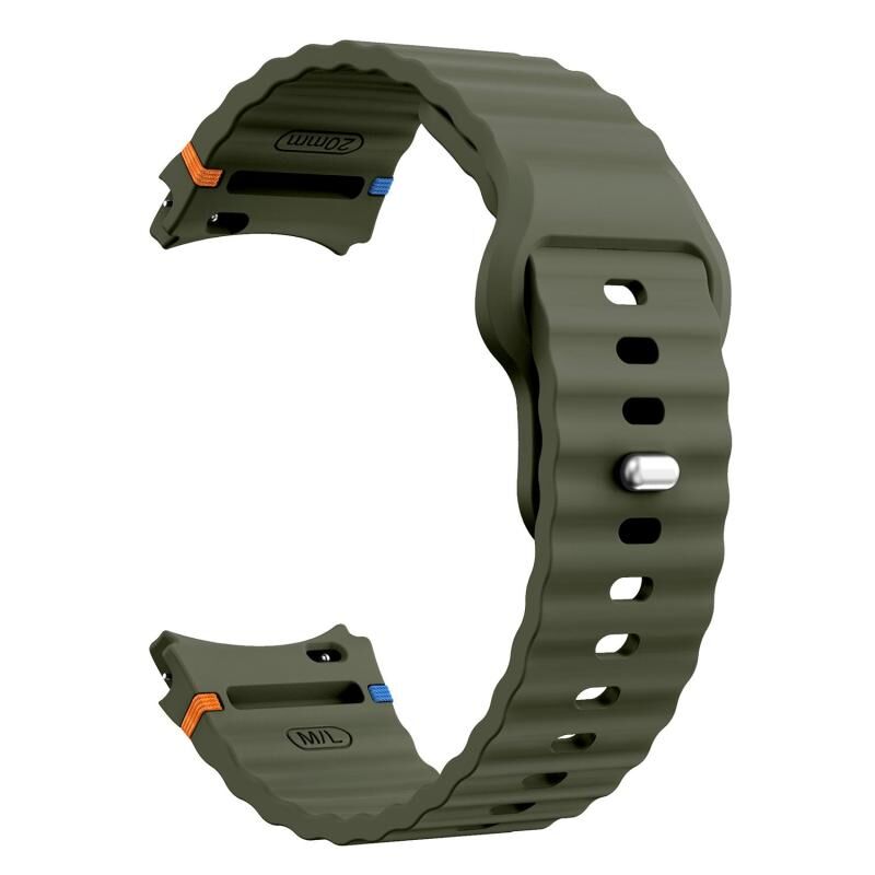 For Samsung Galaxy Watch 7 40mm / 44mm Wavy Grain Stitched Reverse Buckle 20mm Silicone Watch Band(Army Green)