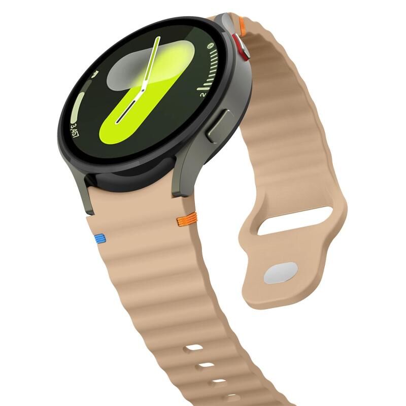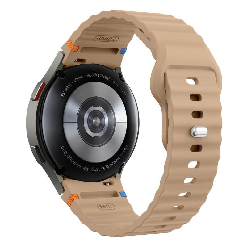 For Samsung Galaxy Watch 7 40mm / 44mm Wavy Grain Stitched Reverse Buckle 20mm Silicone Watch Band(Milk Tea)