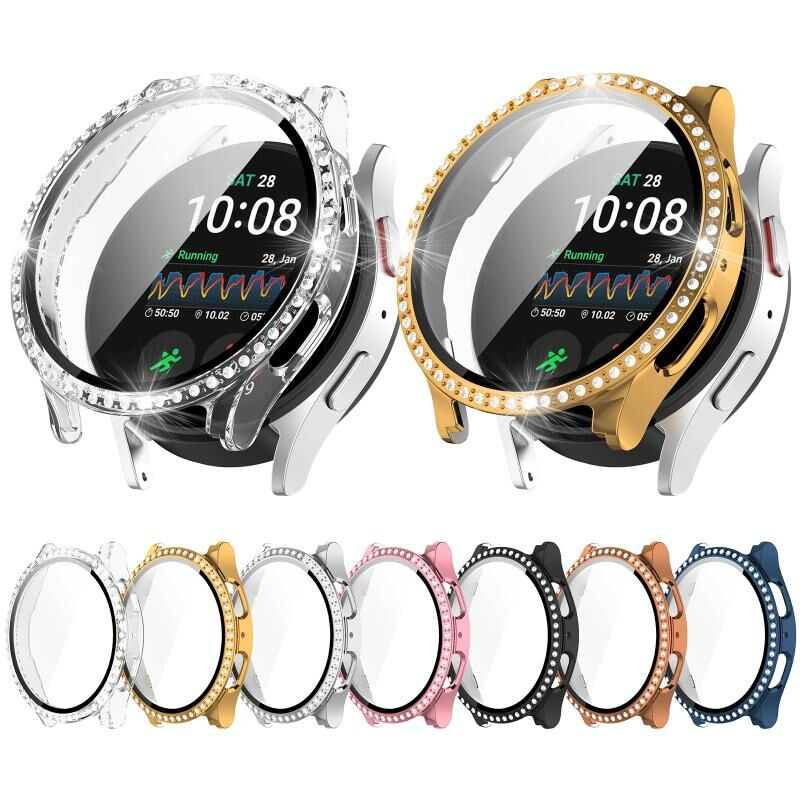 Για το Samsung Galaxy Watch 7 40mm μονής σειράς διαμαντιών PC + μετριασμένη μεμβράνη ενσωματωμένη προστατευτική θήκη ρολογιού (ροζ χρυσό)