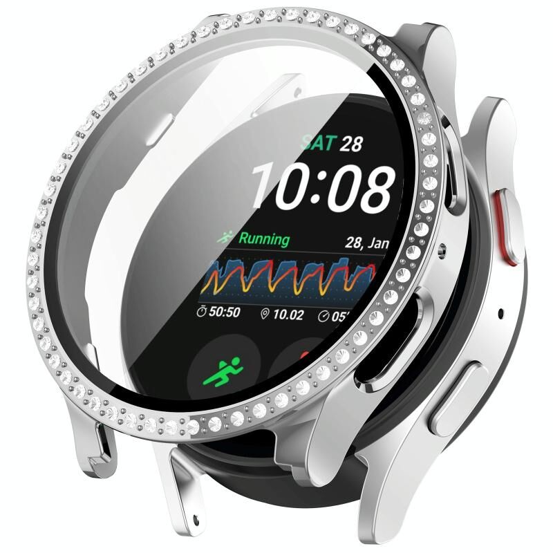 Για το Samsung Galaxy Watch 7 40mm μονής σειράς διαμαντιών PC + μετριασμένη ταινία ενσωματωμένη προστατευτική θήκη ρολογιού (ασημί)