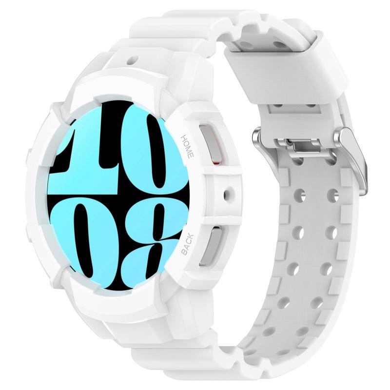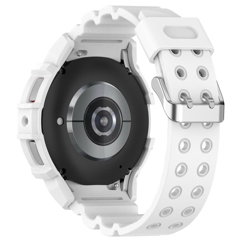 For Samsung Galaxy Watch 7 44mm Armor Silicone Watch Band with Watch Case Set(White)