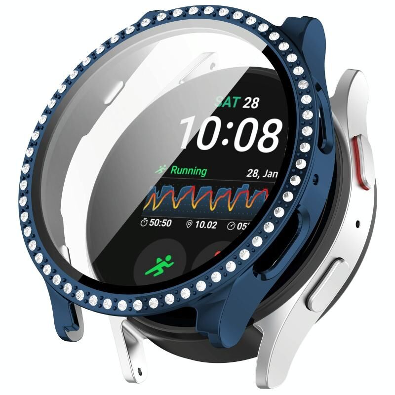 Για το Samsung Galaxy Watch 7 44mm μονής σειράς διαμαντιών PC + μετριασμένη ταινία ενσωματωμένη προστατευτική θήκη ρολογιού (Μπλε μεσάνυχτα)