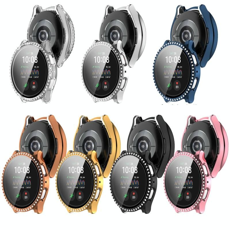 Για το Samsung Galaxy Watch 7 44mm μονής σειράς διαμαντιών PC + μετριασμένη μεμβράνη ενσωματωμένη προστατευτική θήκη ρολογιού (ροζ)