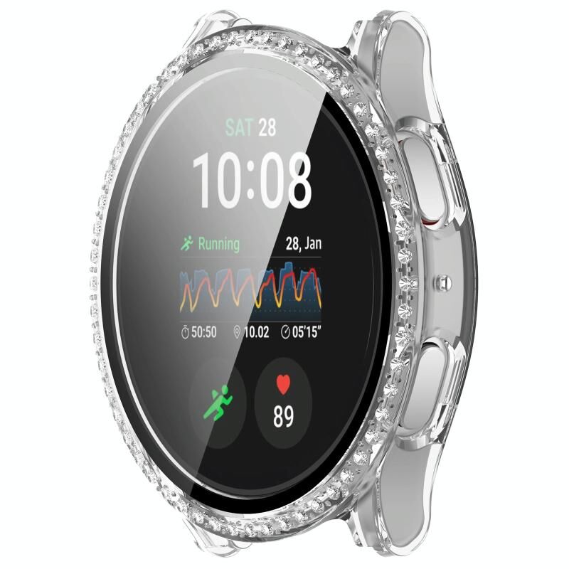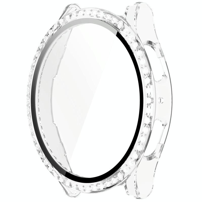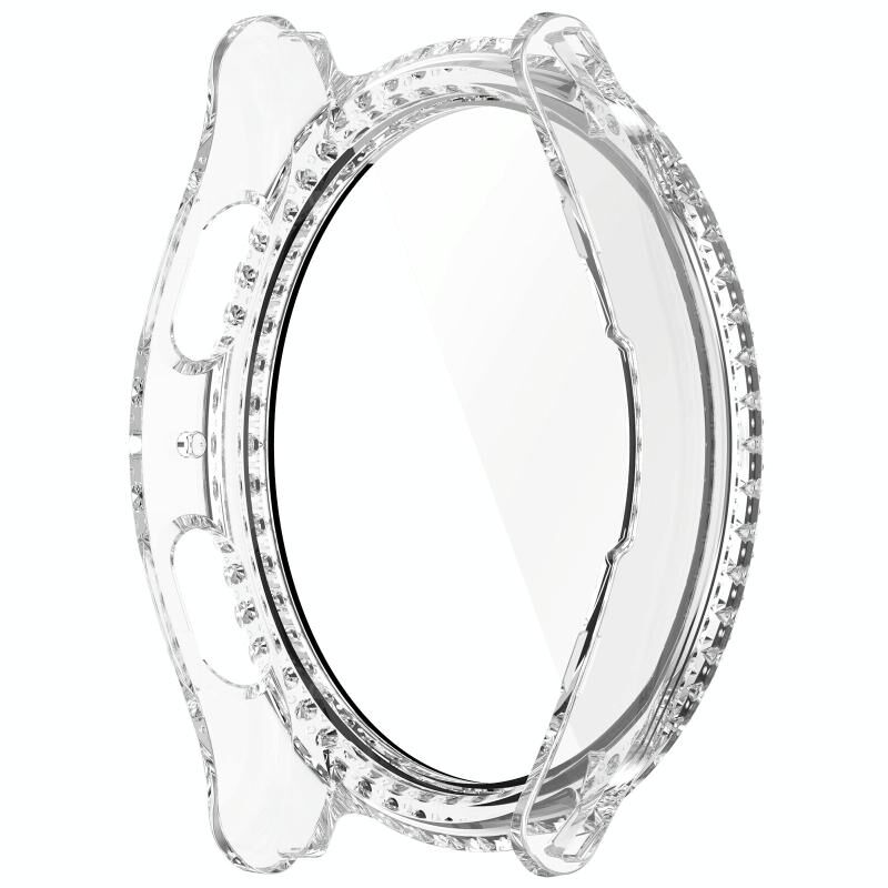 Για Samsung Galaxy Watch 7 44mm μονής σειράς διαμαντιών PC + μετριασμένη ταινία ενσωματωμένη προστατευτική θήκη ρολογιού (διαφανές λευκό)