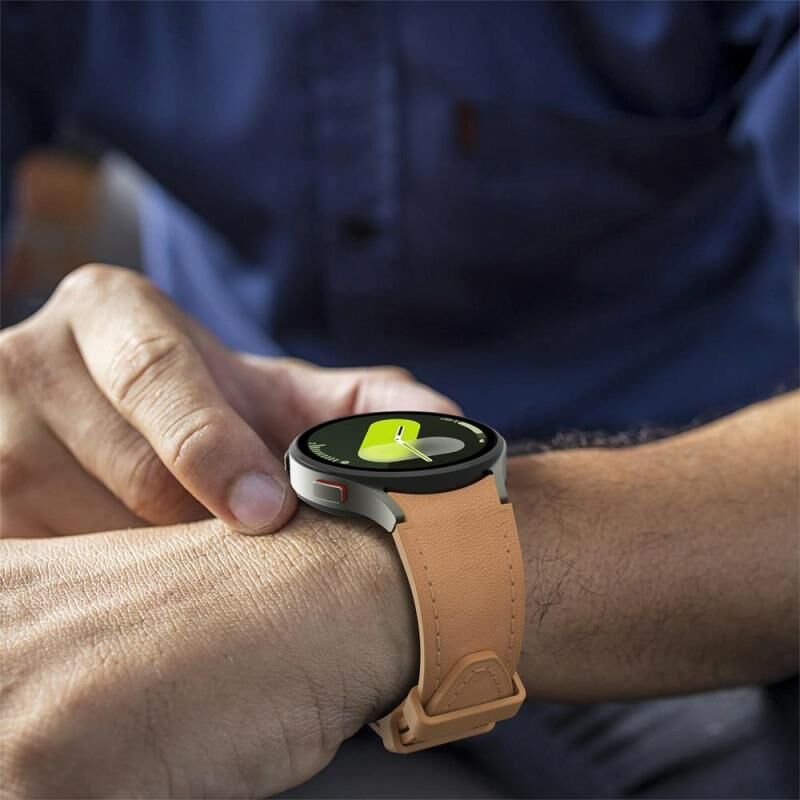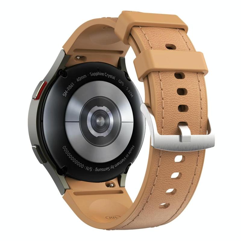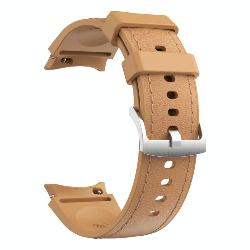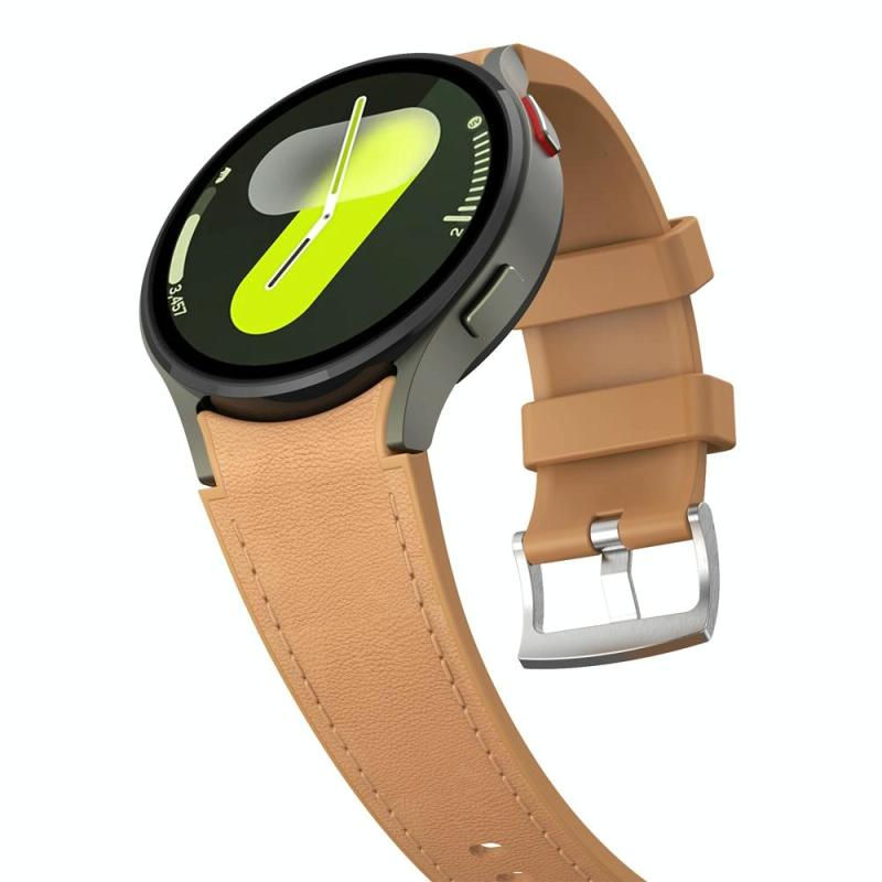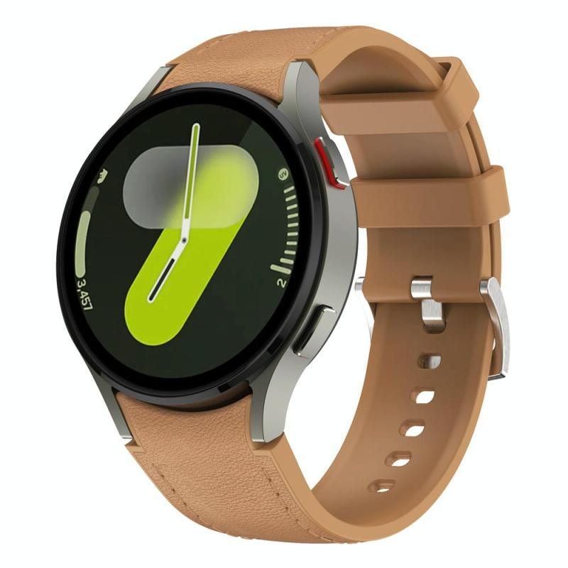For Samsung Galaxy Watch 7 / 6 / 5 / 4 Silver Pin Buckle Leather Silicone Watch Band(Light Brown)