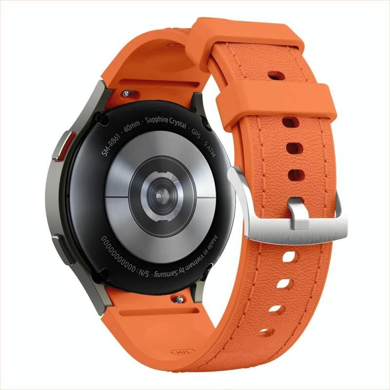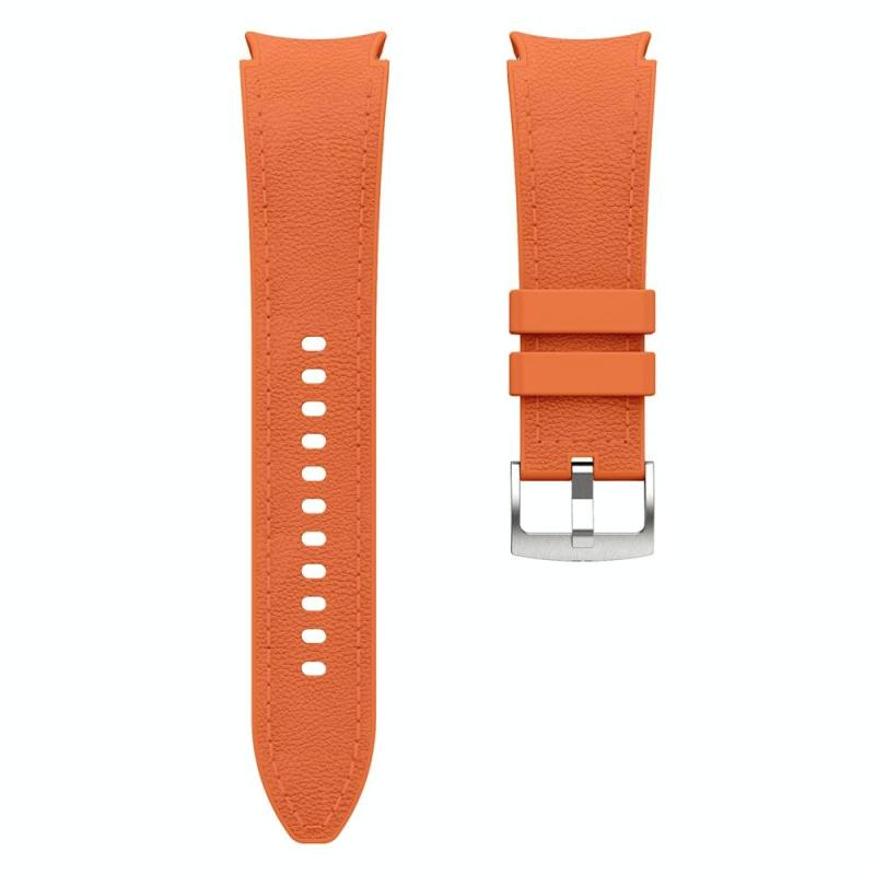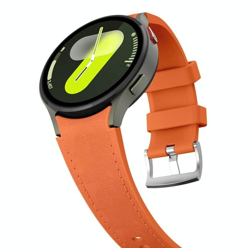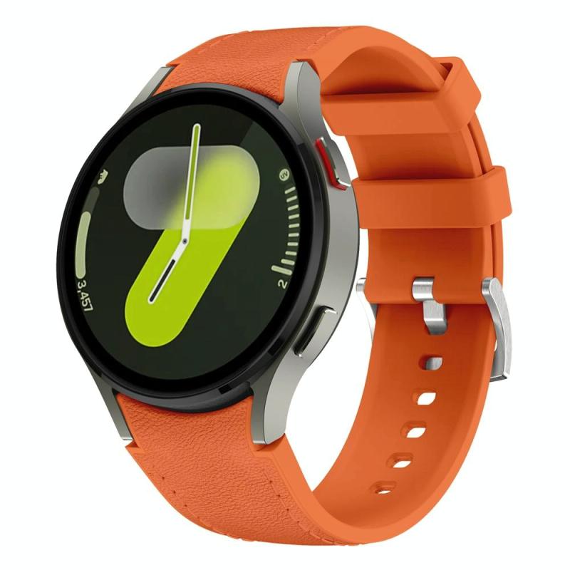 For Samsung Galaxy Watch 7 / 6 / 5 / 4 Silver Pin Buckle Leather Silicone Watch Band(Orange)