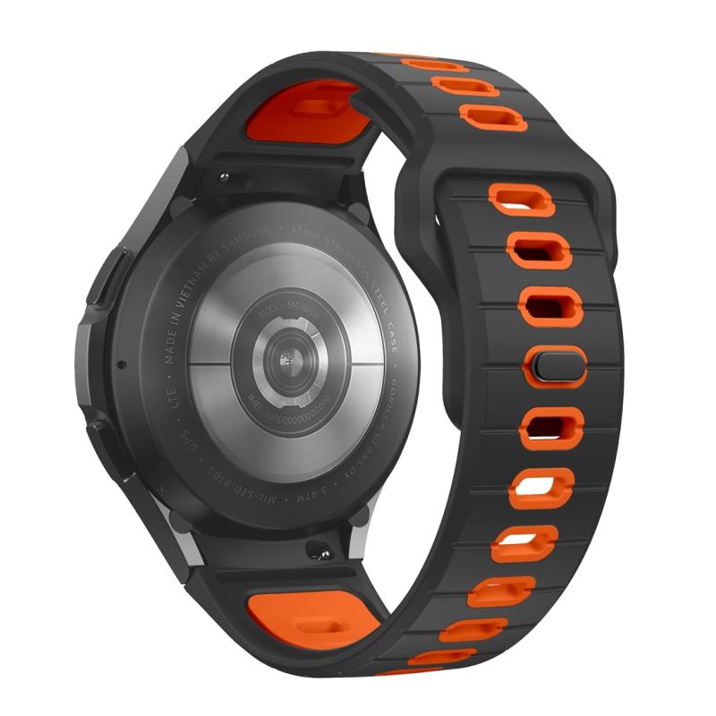 For Samsung Galaxy Watch 7 / 6 Two Color Stripes Reverse Buckle Silicone Watch Band(Black Orange)