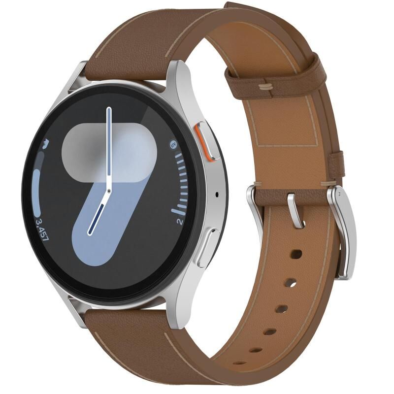 For Samsung Galaxy Watch 7 Press Button 20mm Leather Watch Band(Brown)