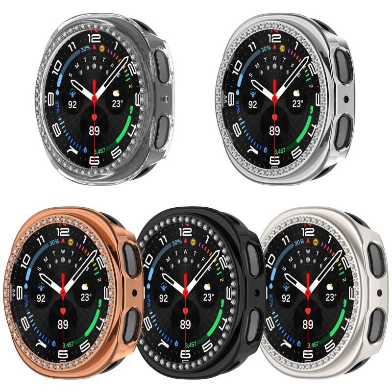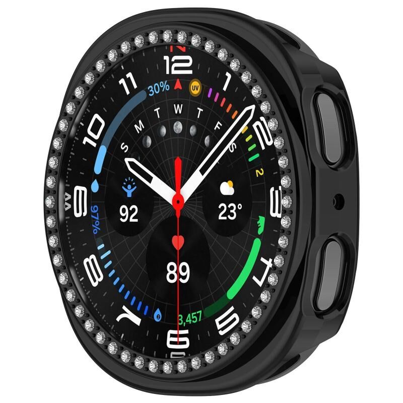 For Samsung Galaxy Watch 8 44mm Single Row Diamond Half Coverage Hollow PC Watch Case(Electroplated Black)