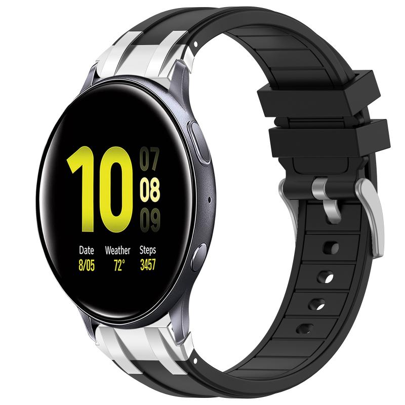 For Samsung Galaxy Watch Active 2 20mm Quick Release Silver Buckle Royal Silicone Watch Band(Black)