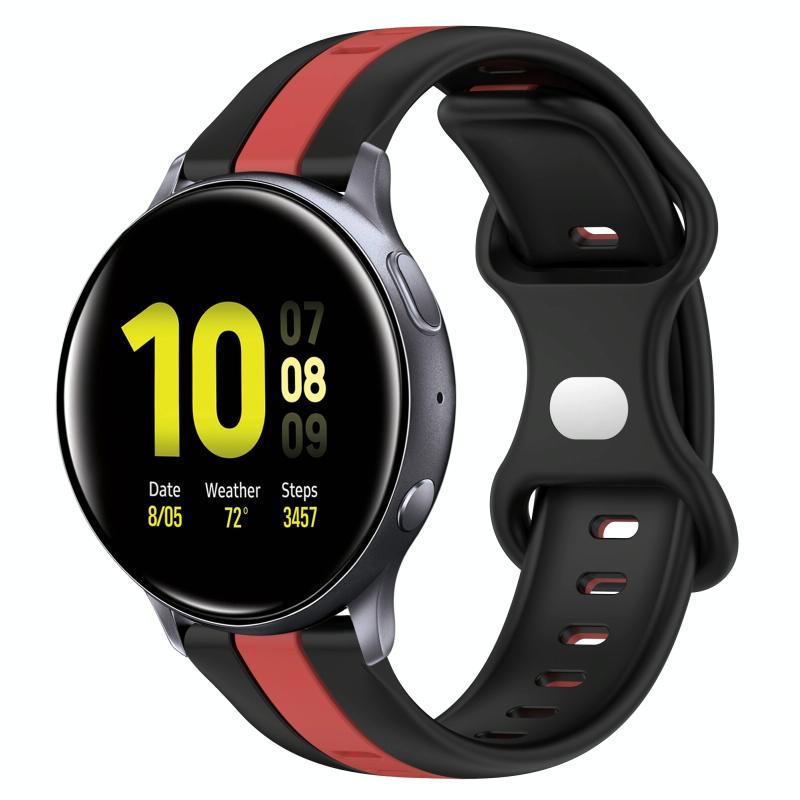 For Samsung Galaxy Watch Active 2 40mm 20mm Butterfly Buckle Two-Color Silicone Watch Band(Black+Red)