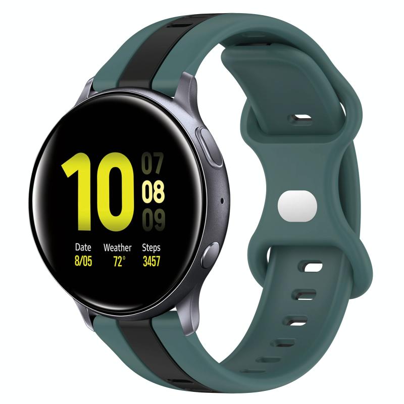 For Samsung Galaxy Watch Active 2 40mm 20mm Butterfly Buckle Two-Color Silicone Watch Band(Green+Black)